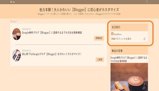 自己紹介文を書く場所は、Bloggerの「設定」>「ユーザ設定」>「全般」の中のユーザプロフィールです。
